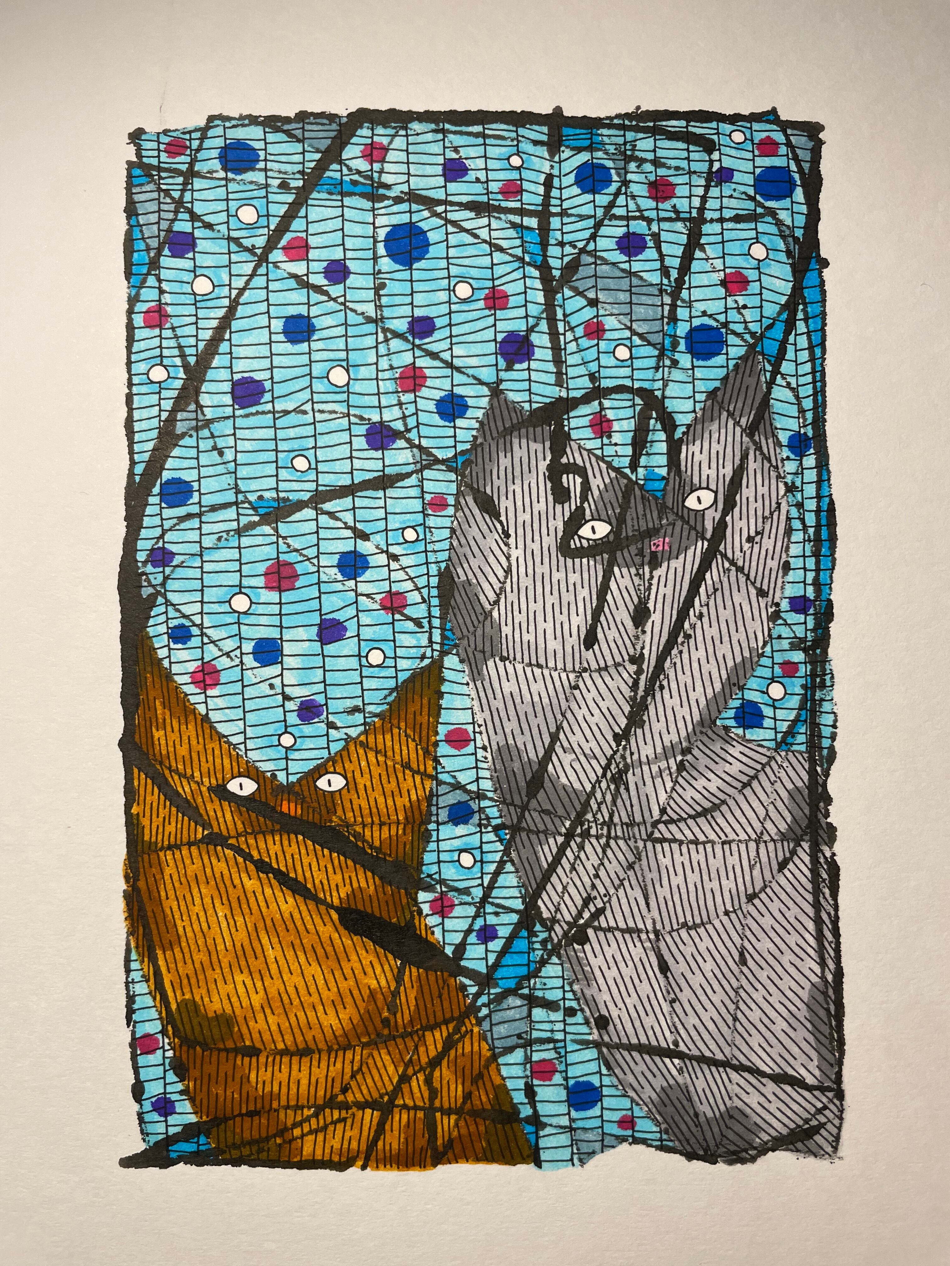 素材:厚紙画用紙、墨汁、水性マーカー