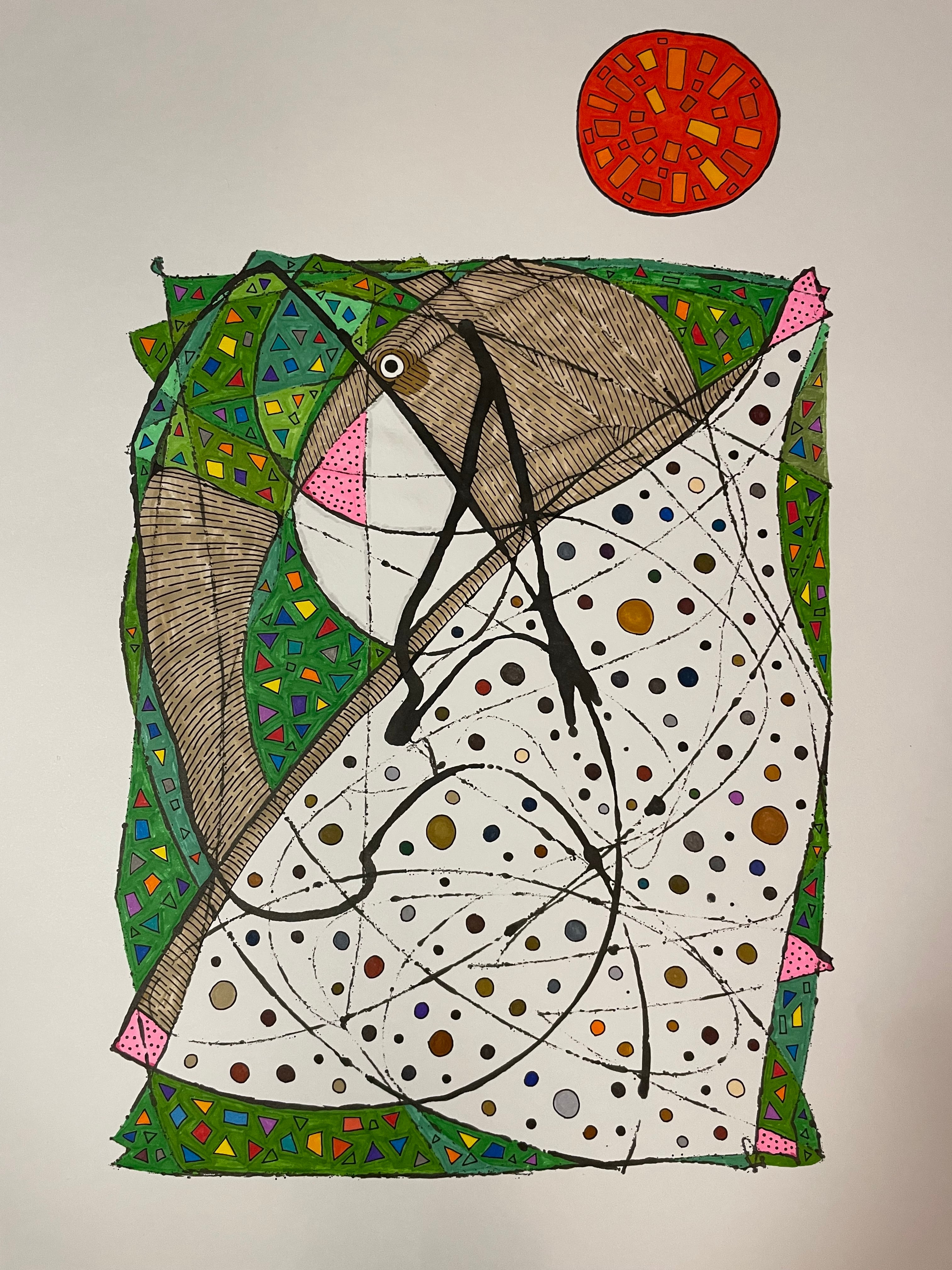 素材:厚紙画用紙、墨汁、水性マーカー