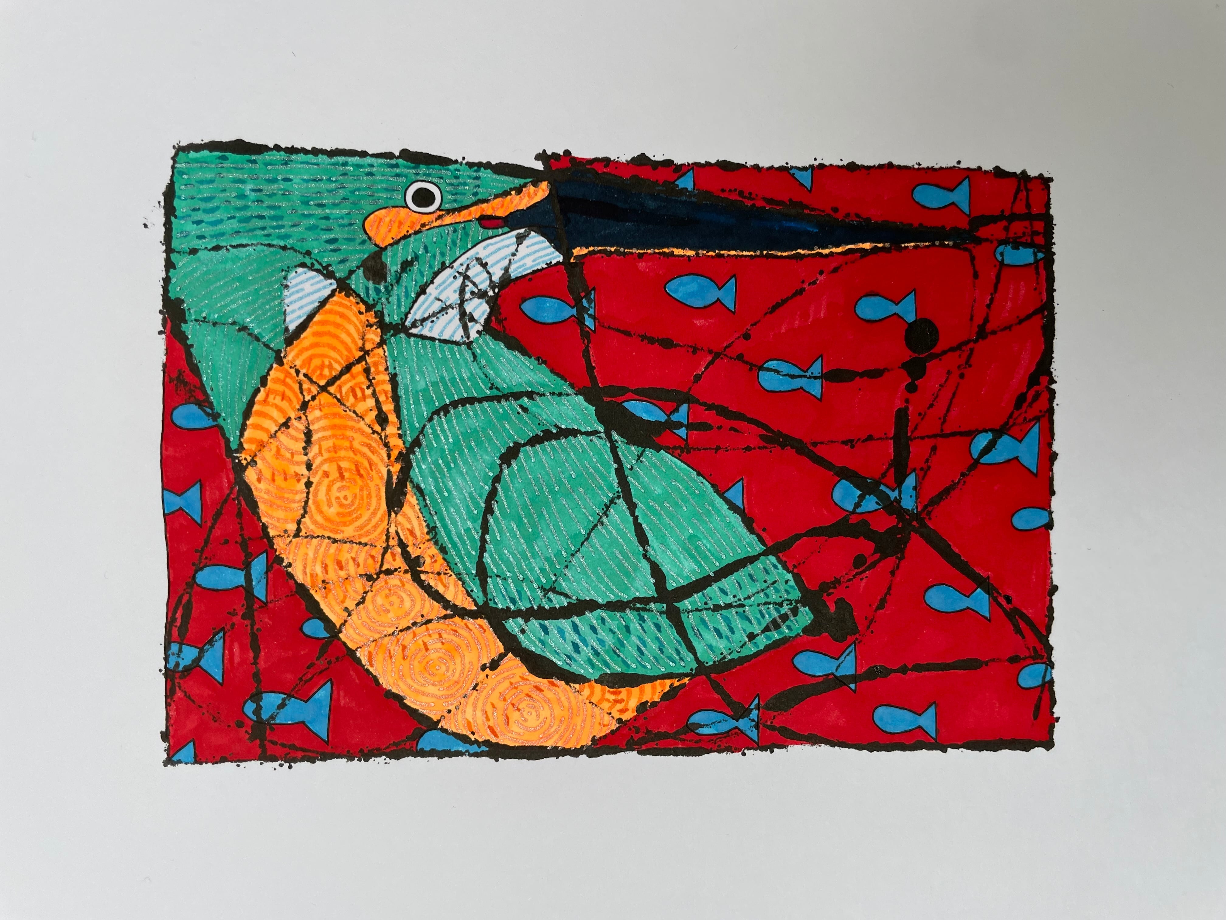 素材:厚紙画用紙、墨汁、水性マーカー